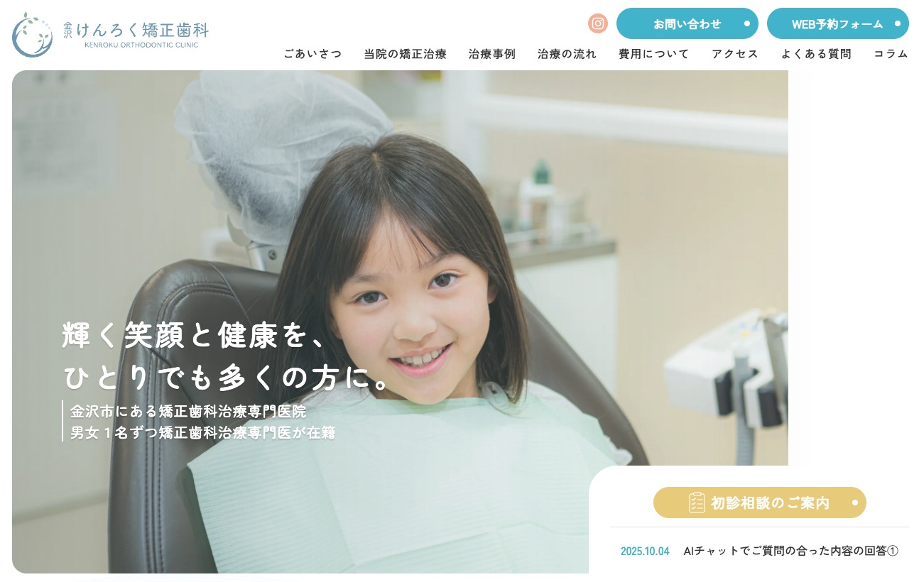 金沢市にある「金沢けんろく矯正歯科」様は、地域で確かな実績を持つ矯正歯科医院です。