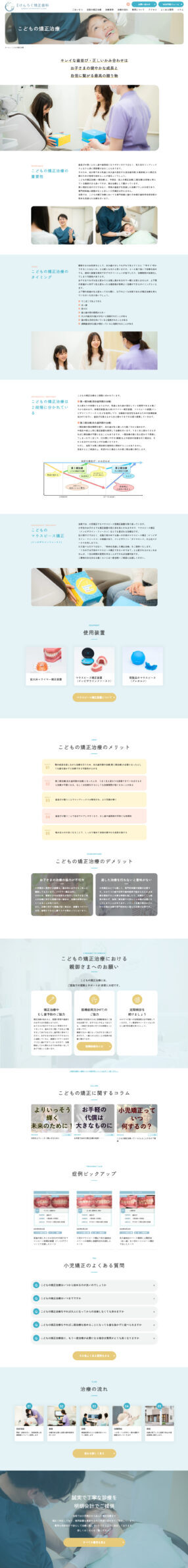 丁寧なカウンセリング風景や子供の笑顔の写真を取り入れることで、通いやすく、信頼感を得られる雰囲気を表現しました。